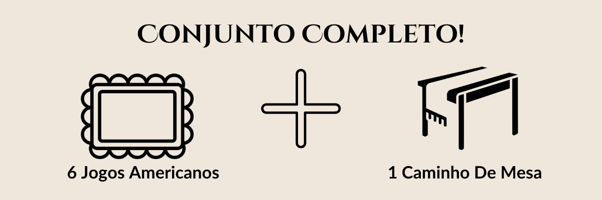 | Composição do Conjunto | 7 peças no total; Jogos americanos em tear de algodão; Peça adicional conforme modelo |